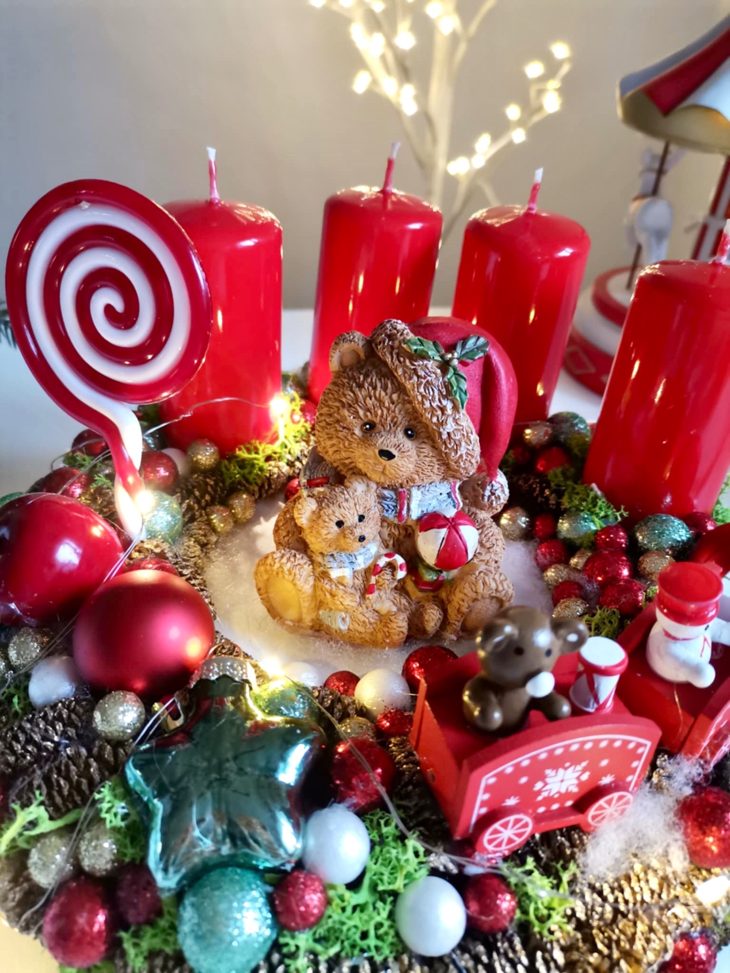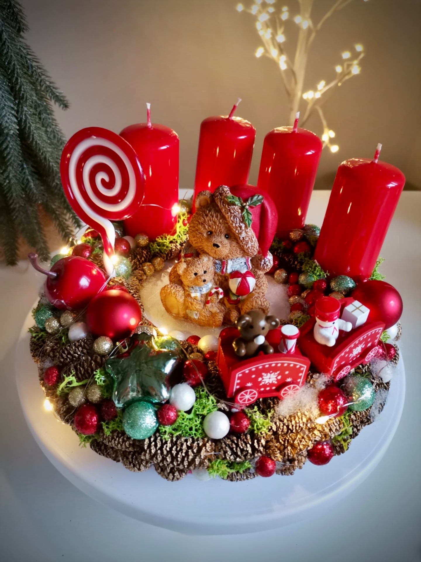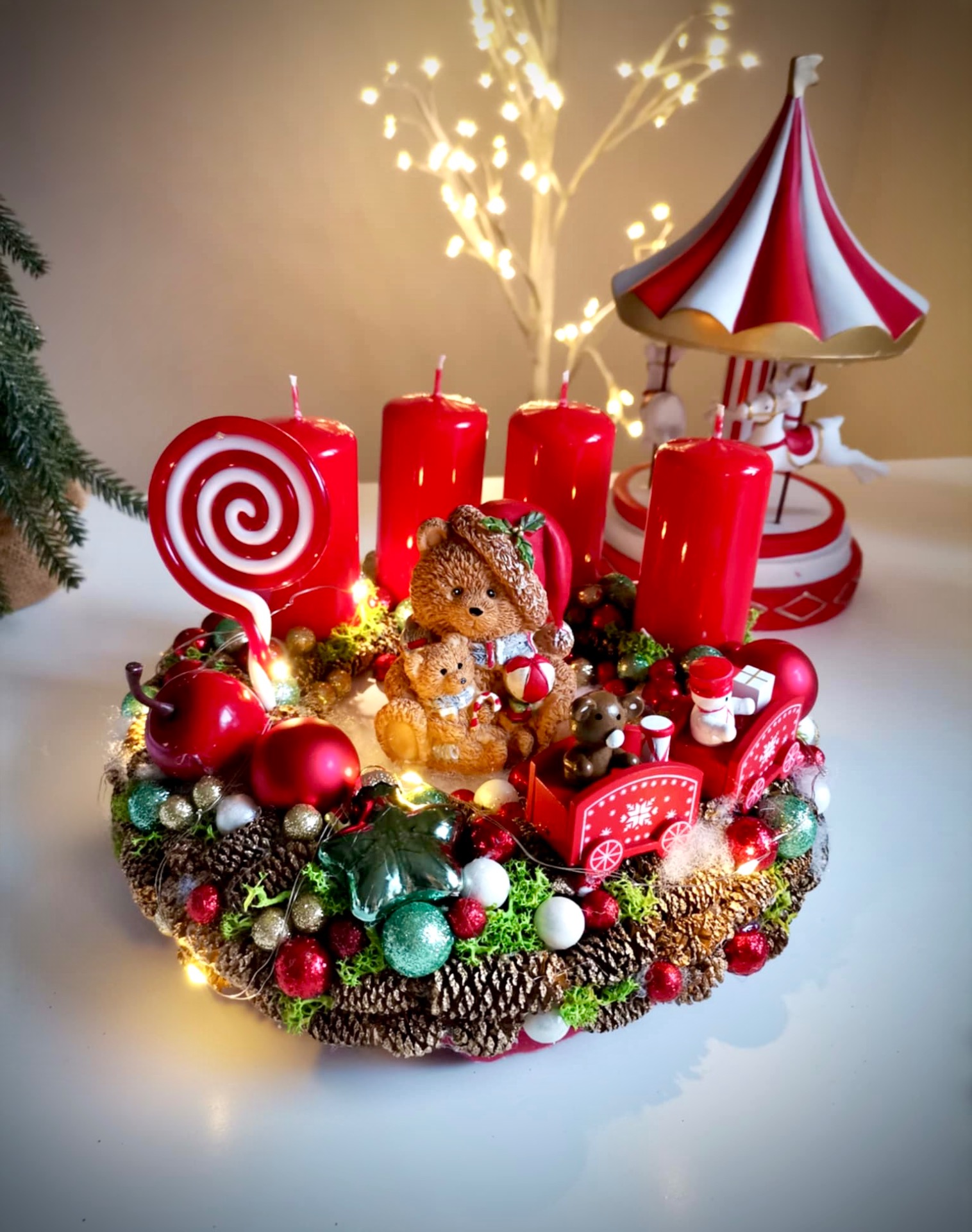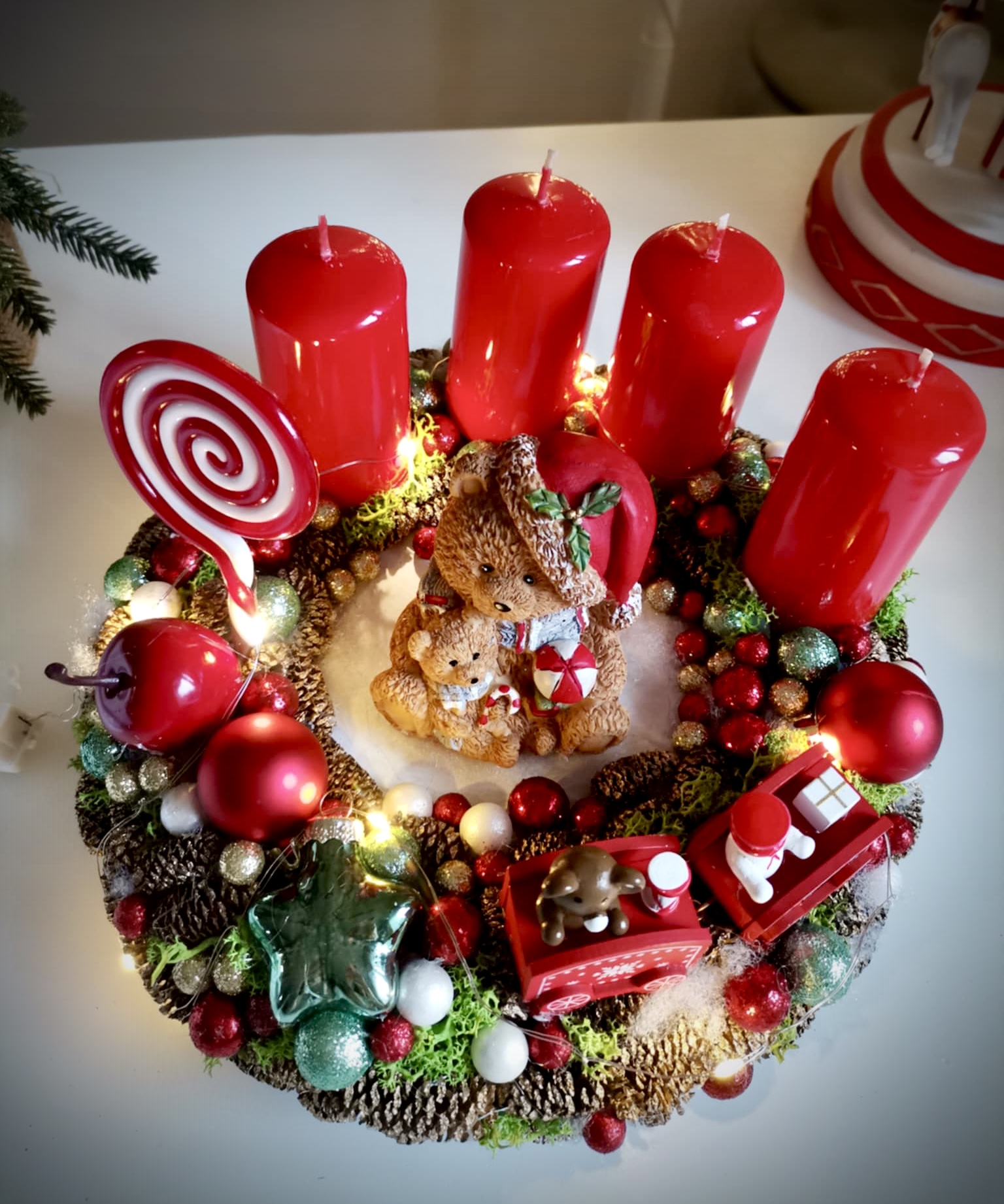 Édes Mackó adventi koszorú, világító adventi (LED_Macko)