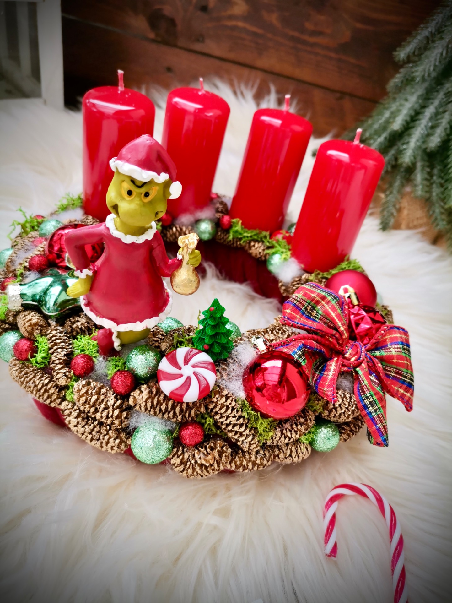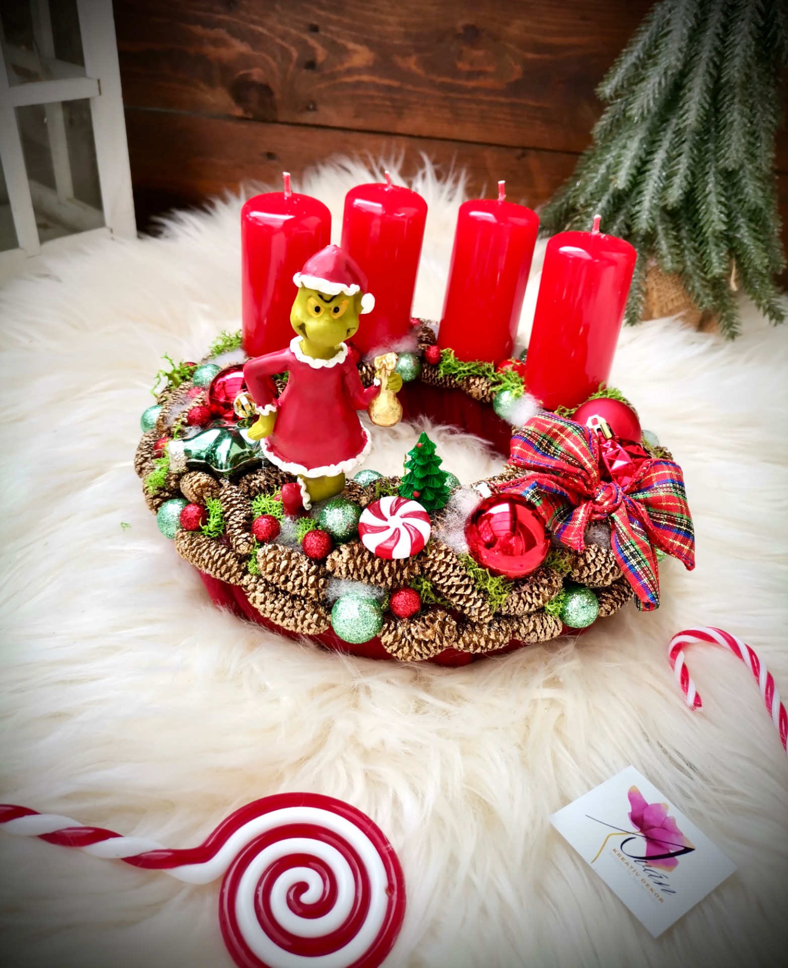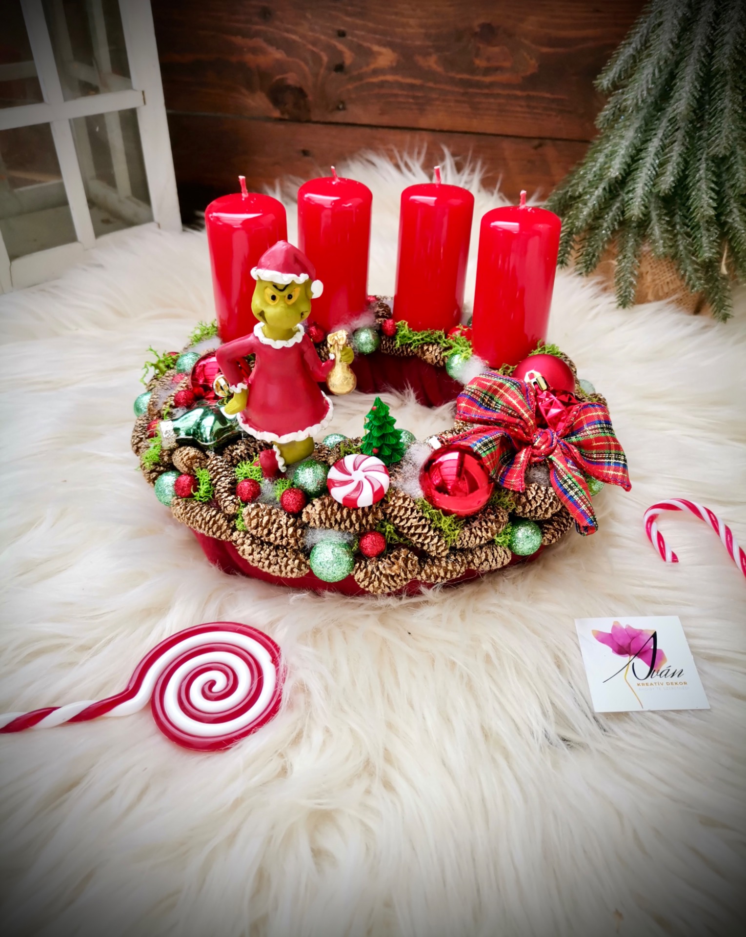 20 centis alappal dolgoztam, plüssel vontam be. A gyertyákat gyertytüskékkel rögzítettem, így később cserélhető.
