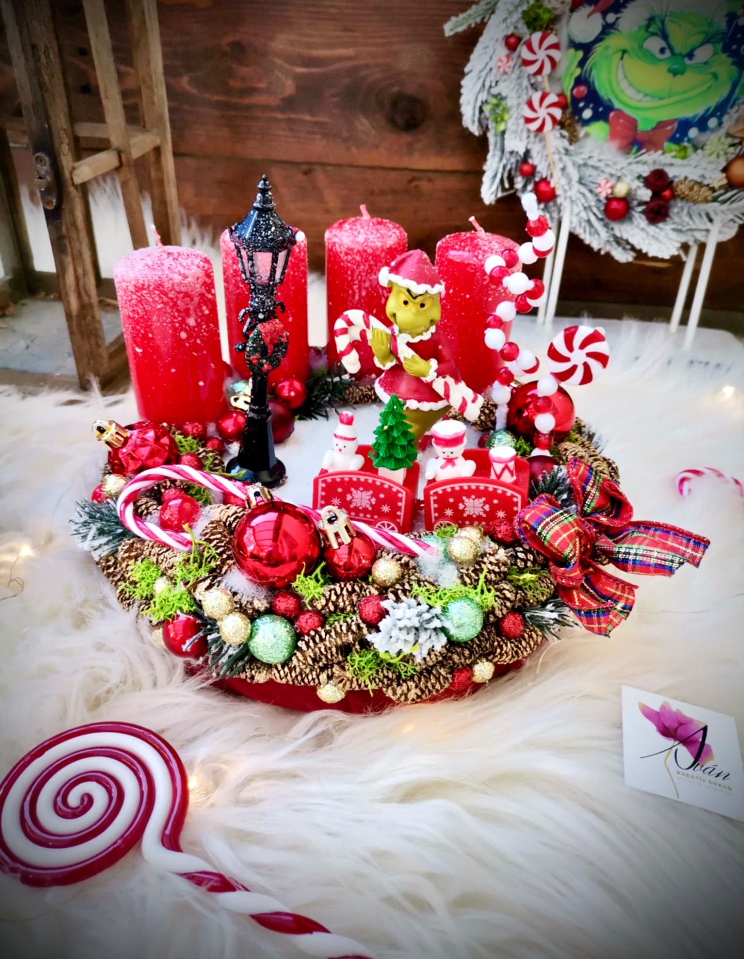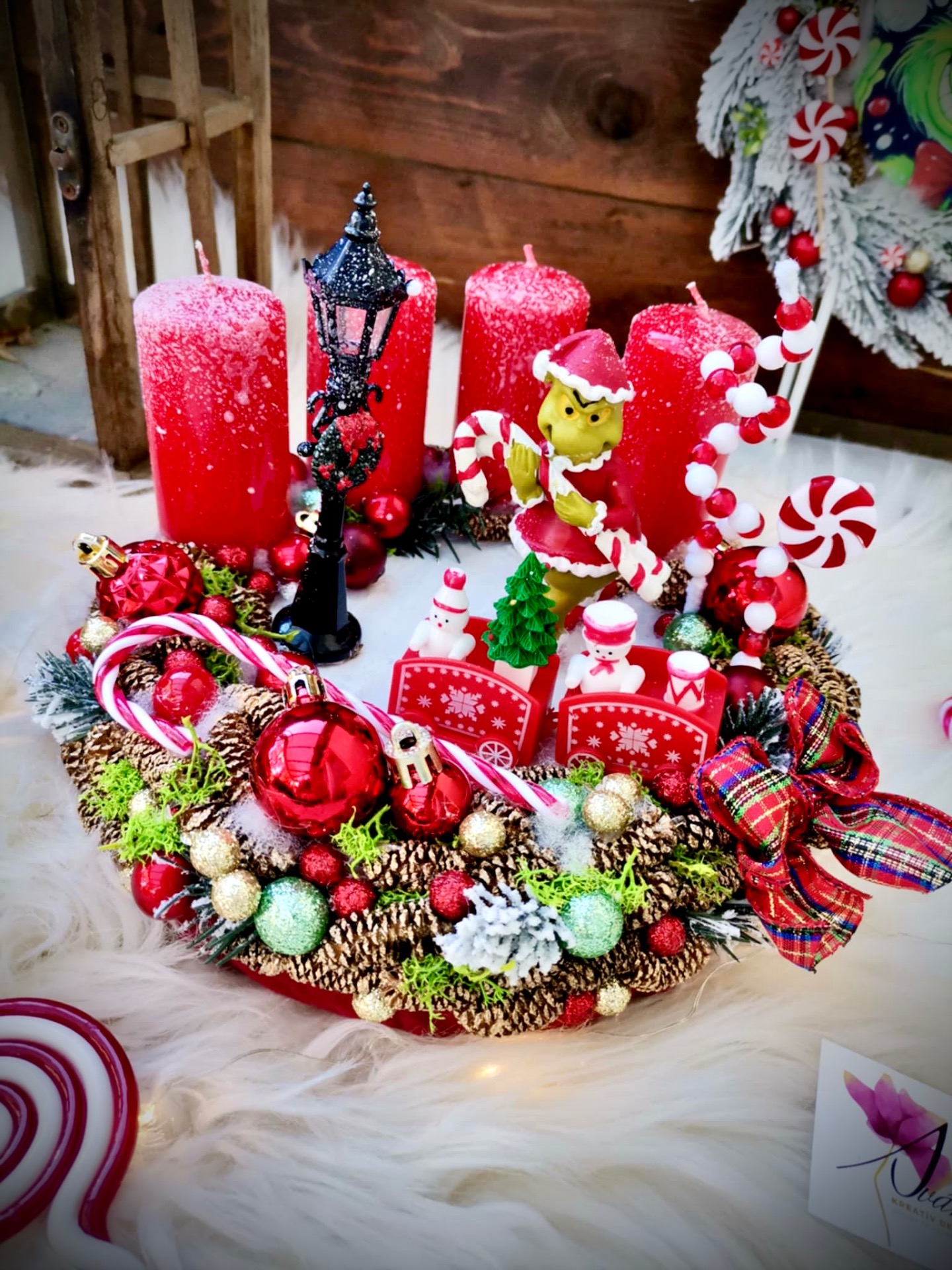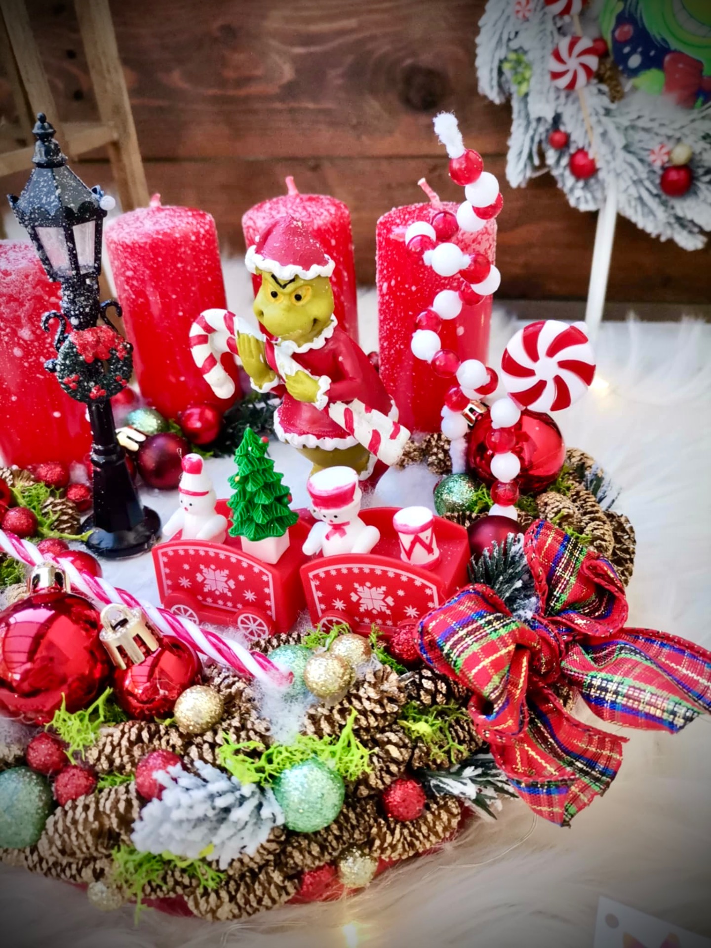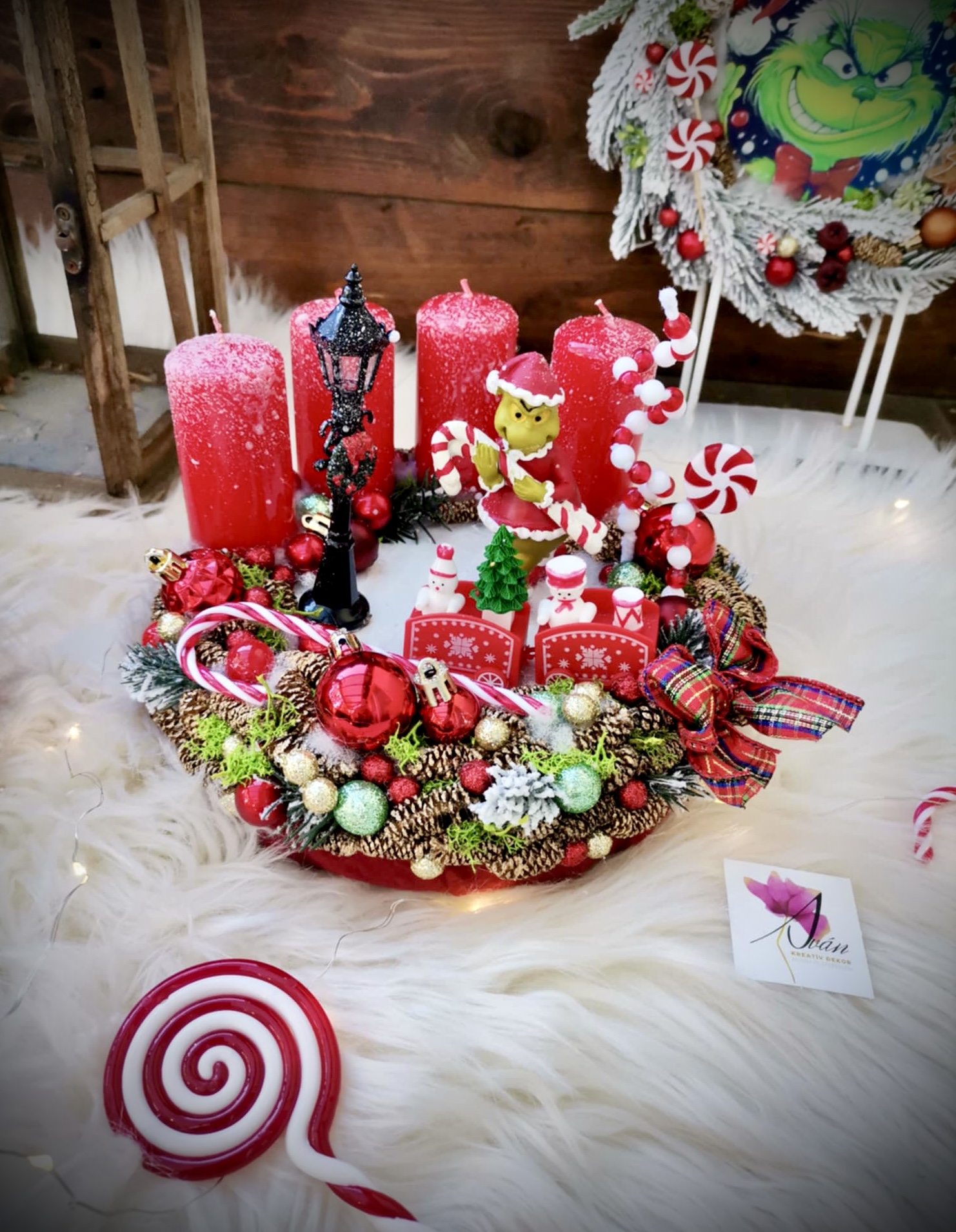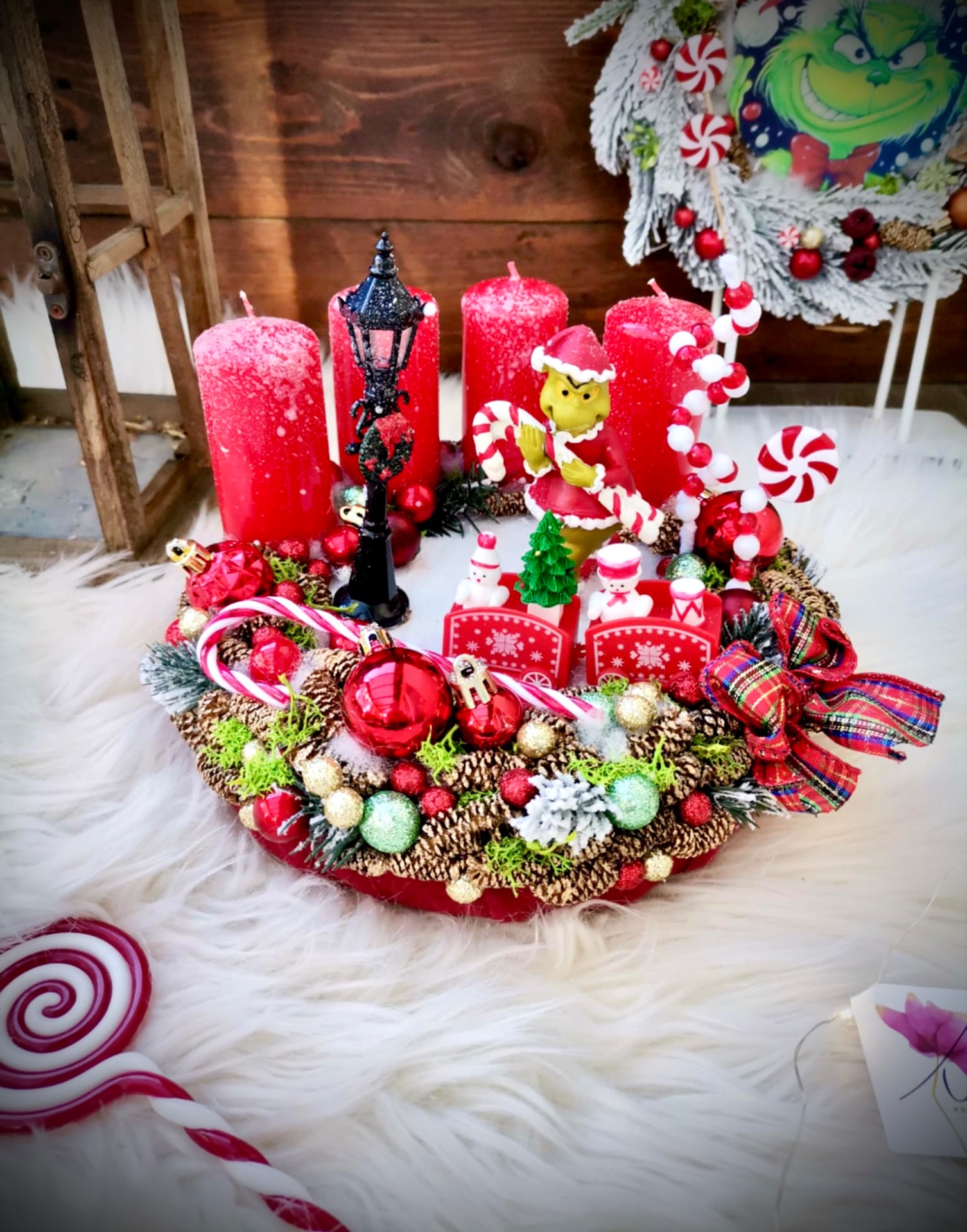 20 centis alappal dolgoztam, plüssel vontam be. A gyertyákat gyertytüskékkel rögzítettem, így később cserélhető.