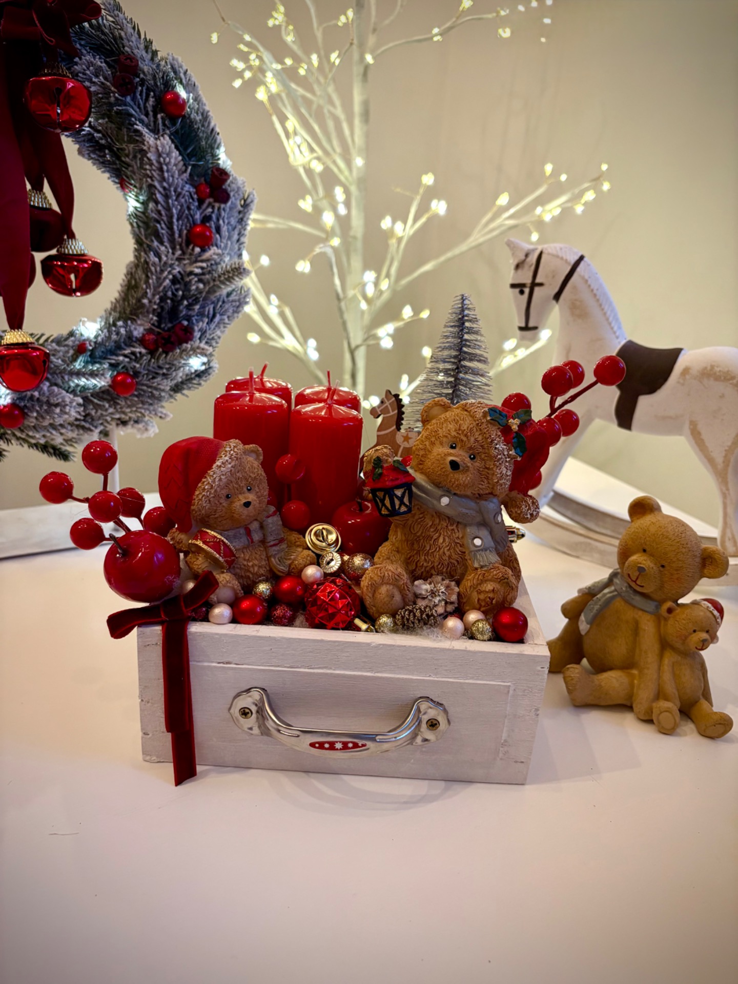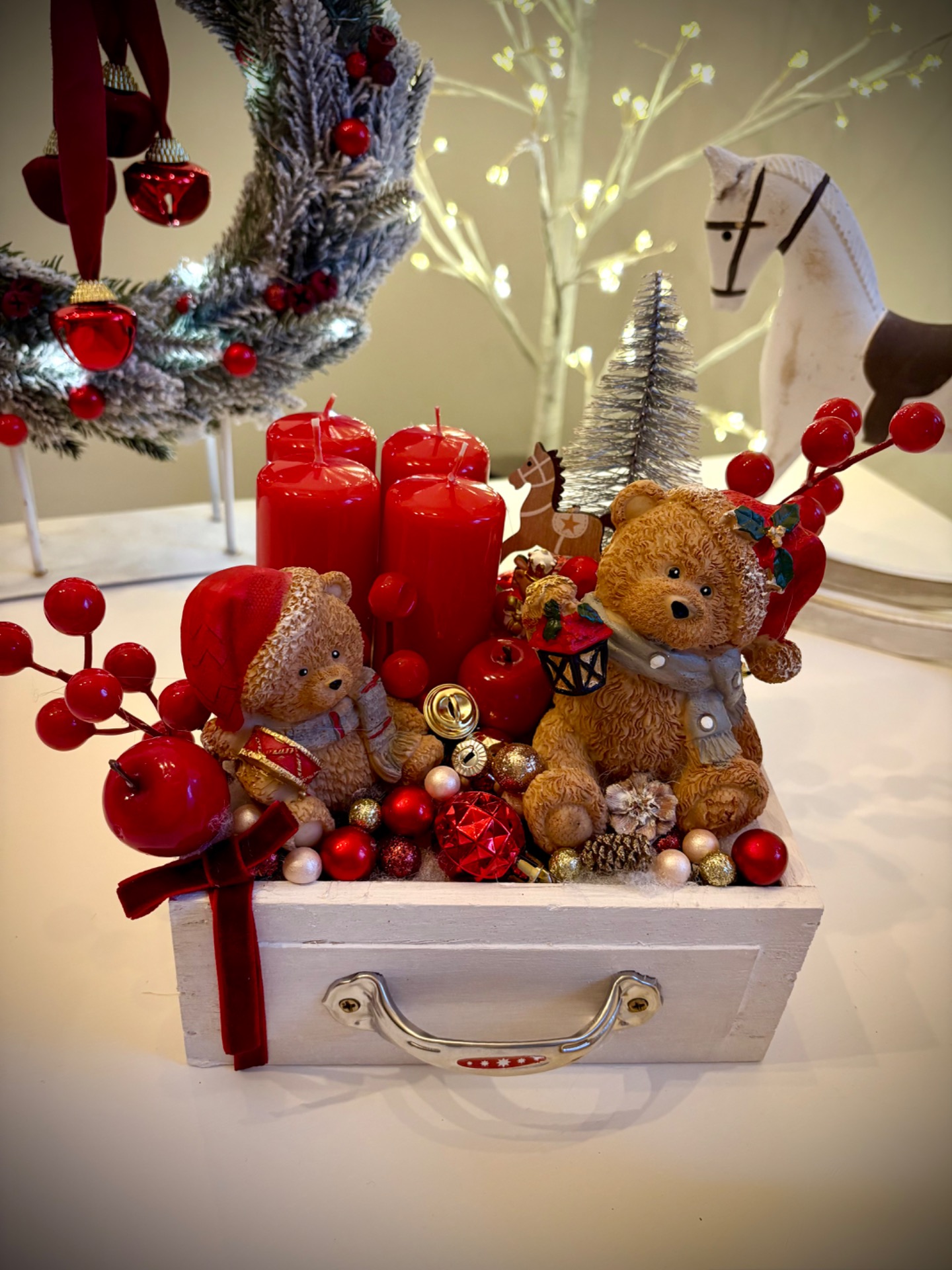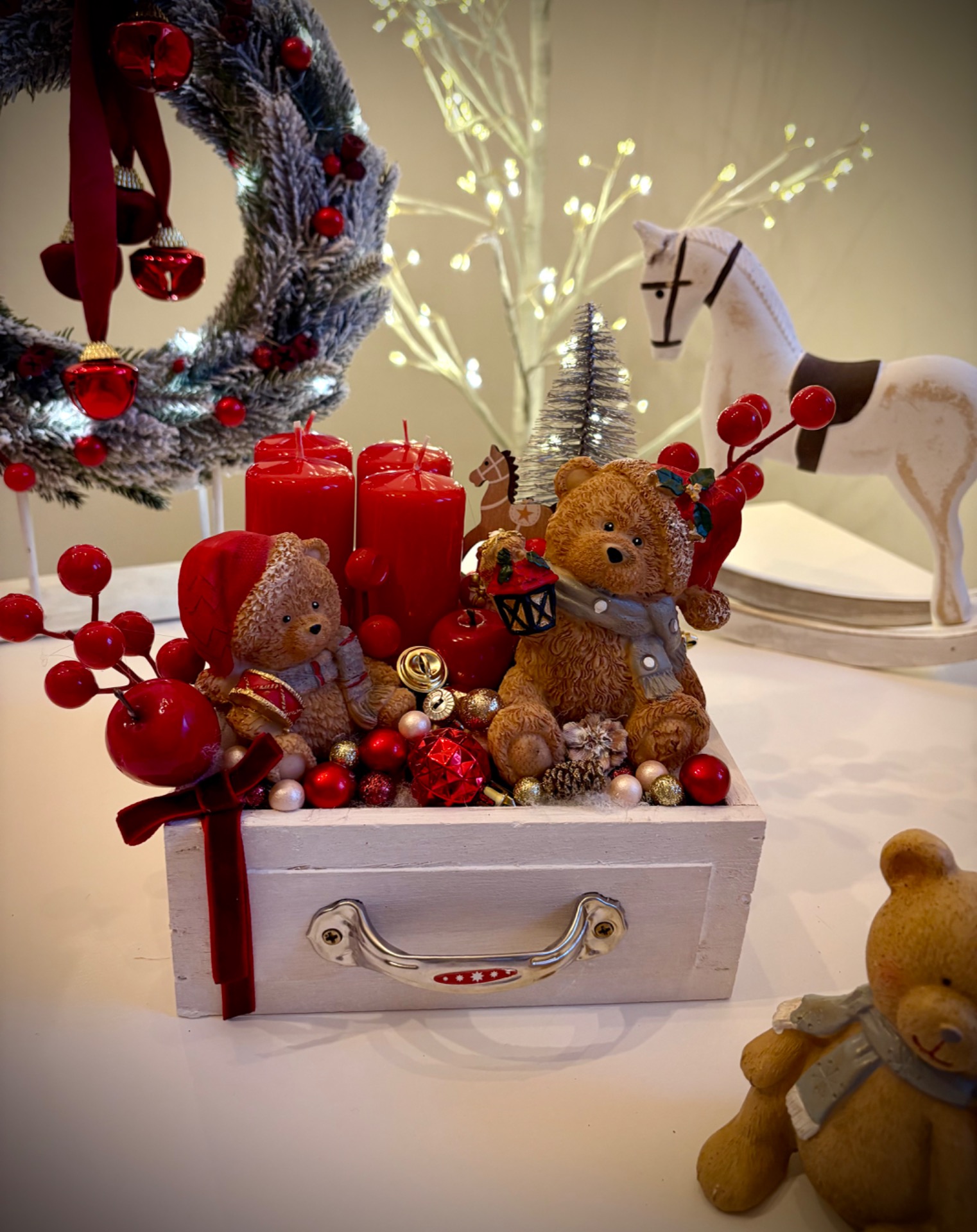 Különleges, karácsonyi hangulatú Mackó adventi. Vintage fiókban.