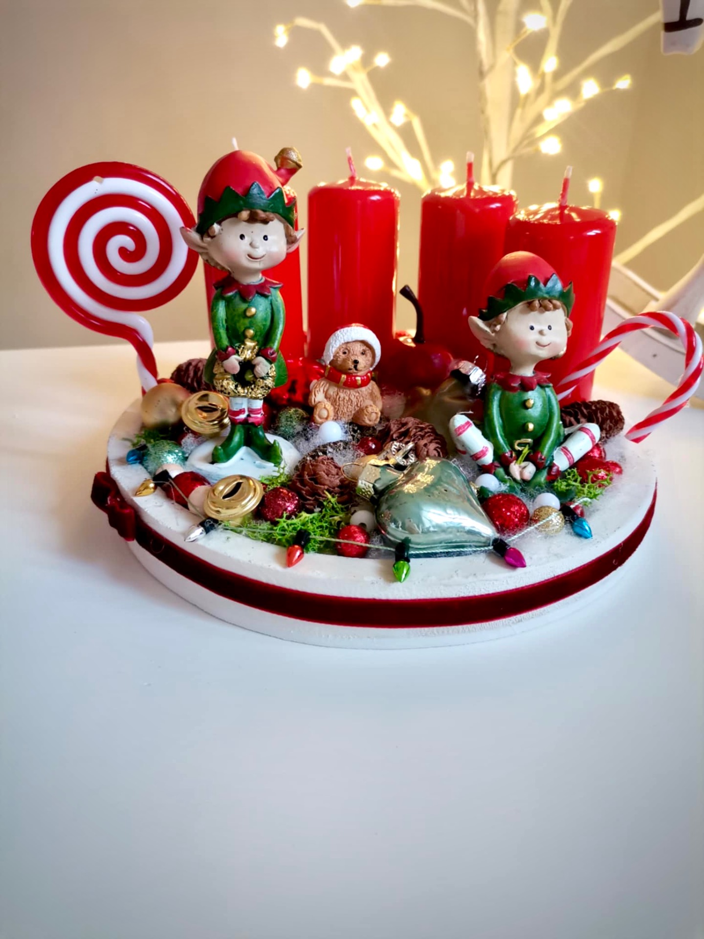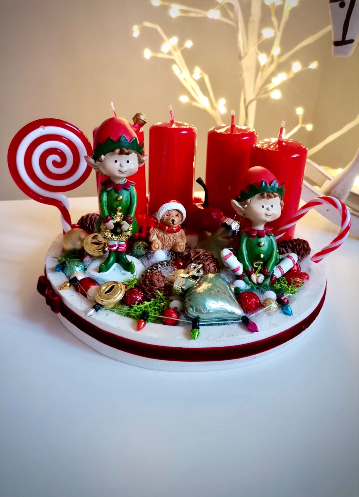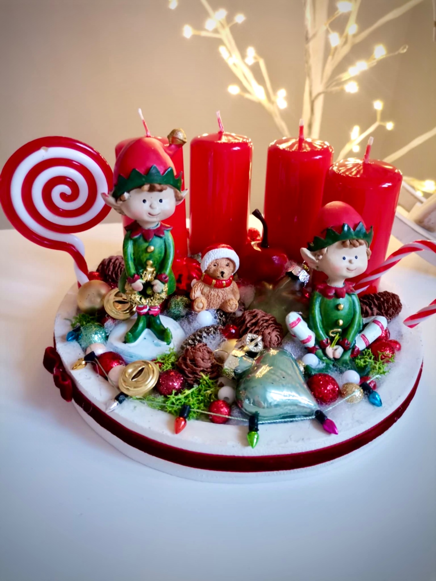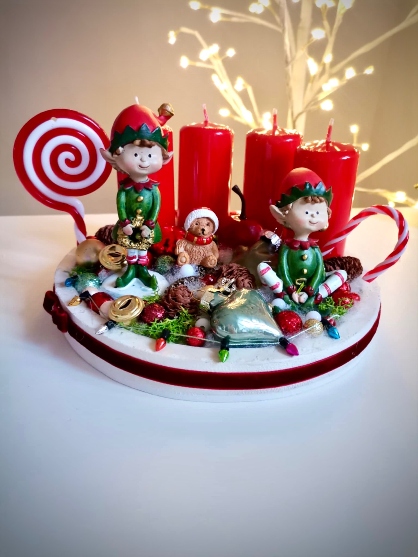 Az alap átmérője 20 cm. A gyertyákat gyertytüskékkel rögzítettem, így később cserélhető.