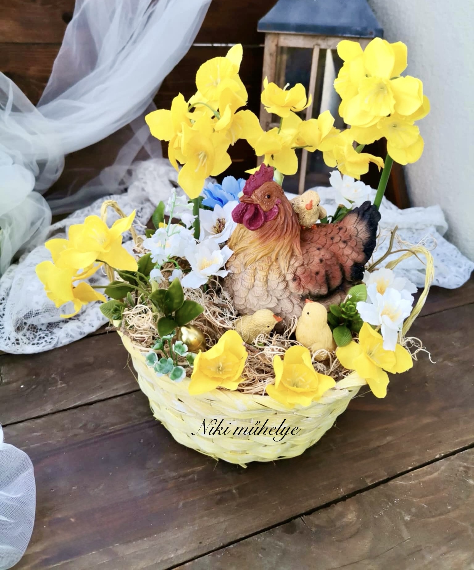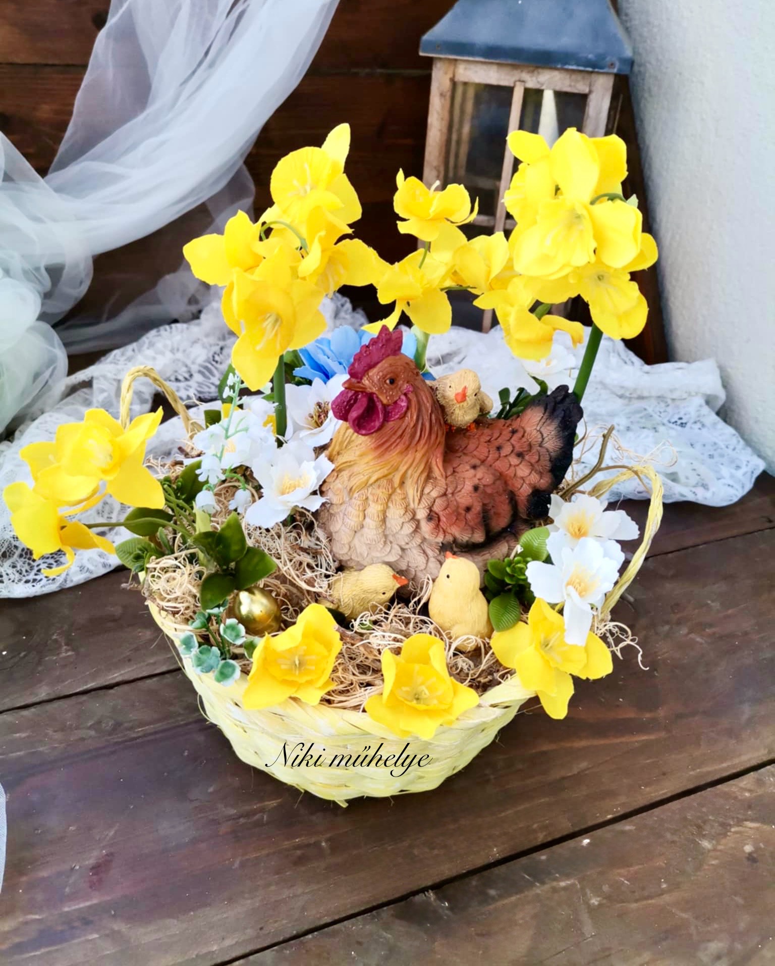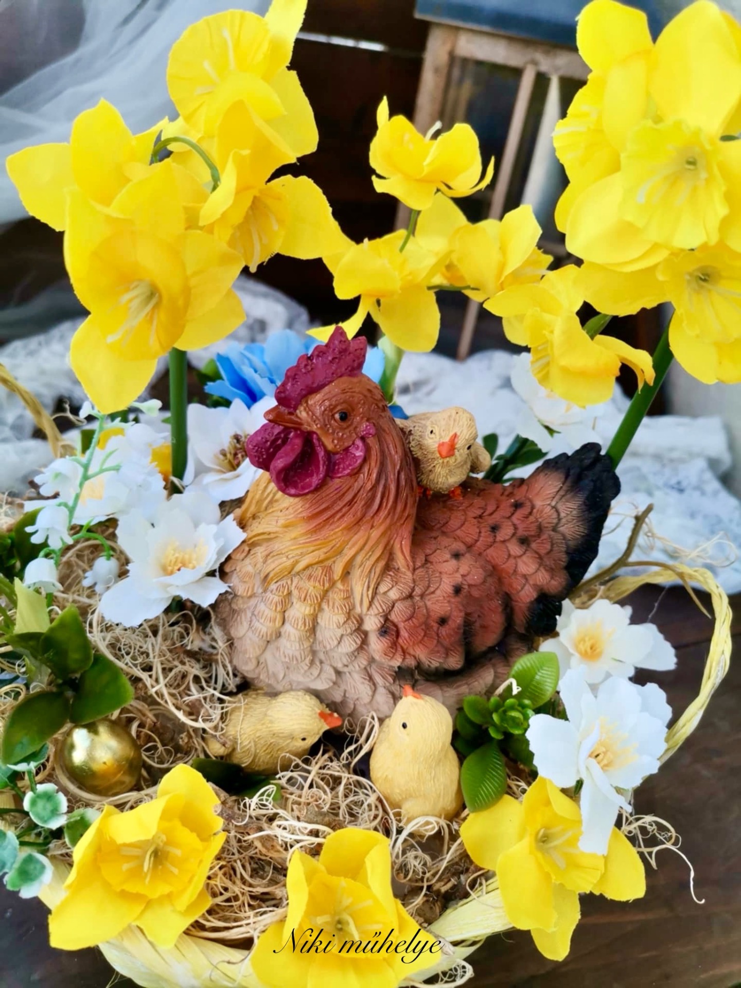 Nárcisz tavaszi asztaldísz, csibe fészek