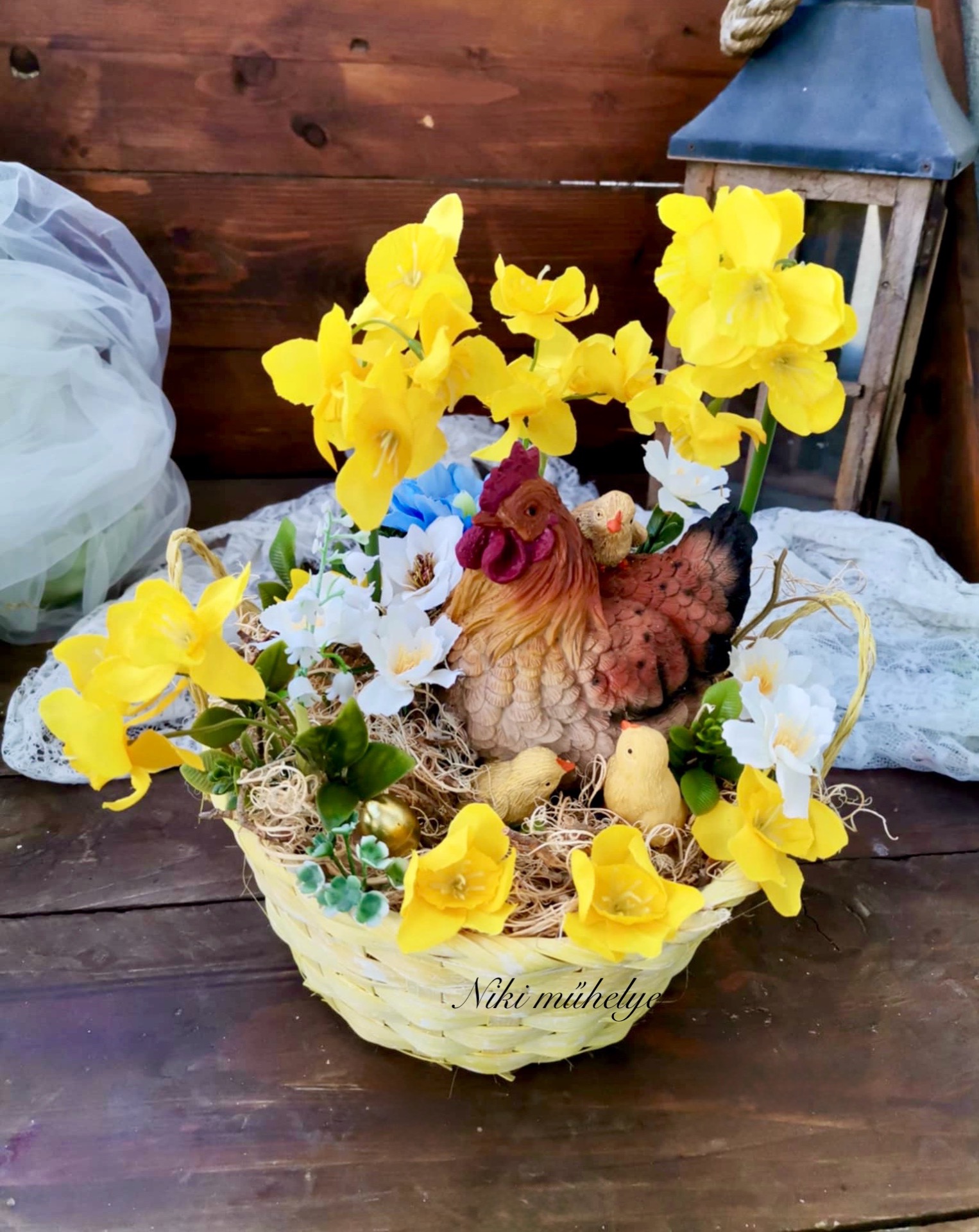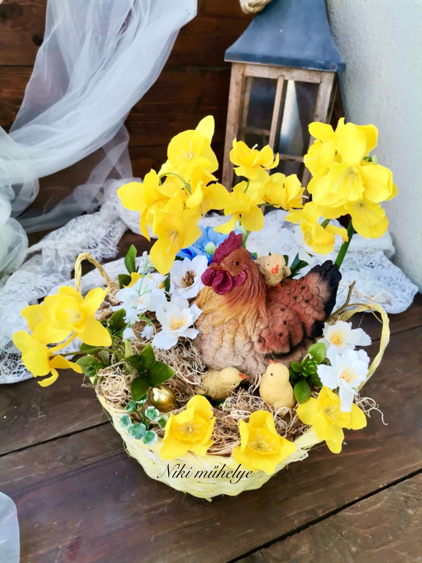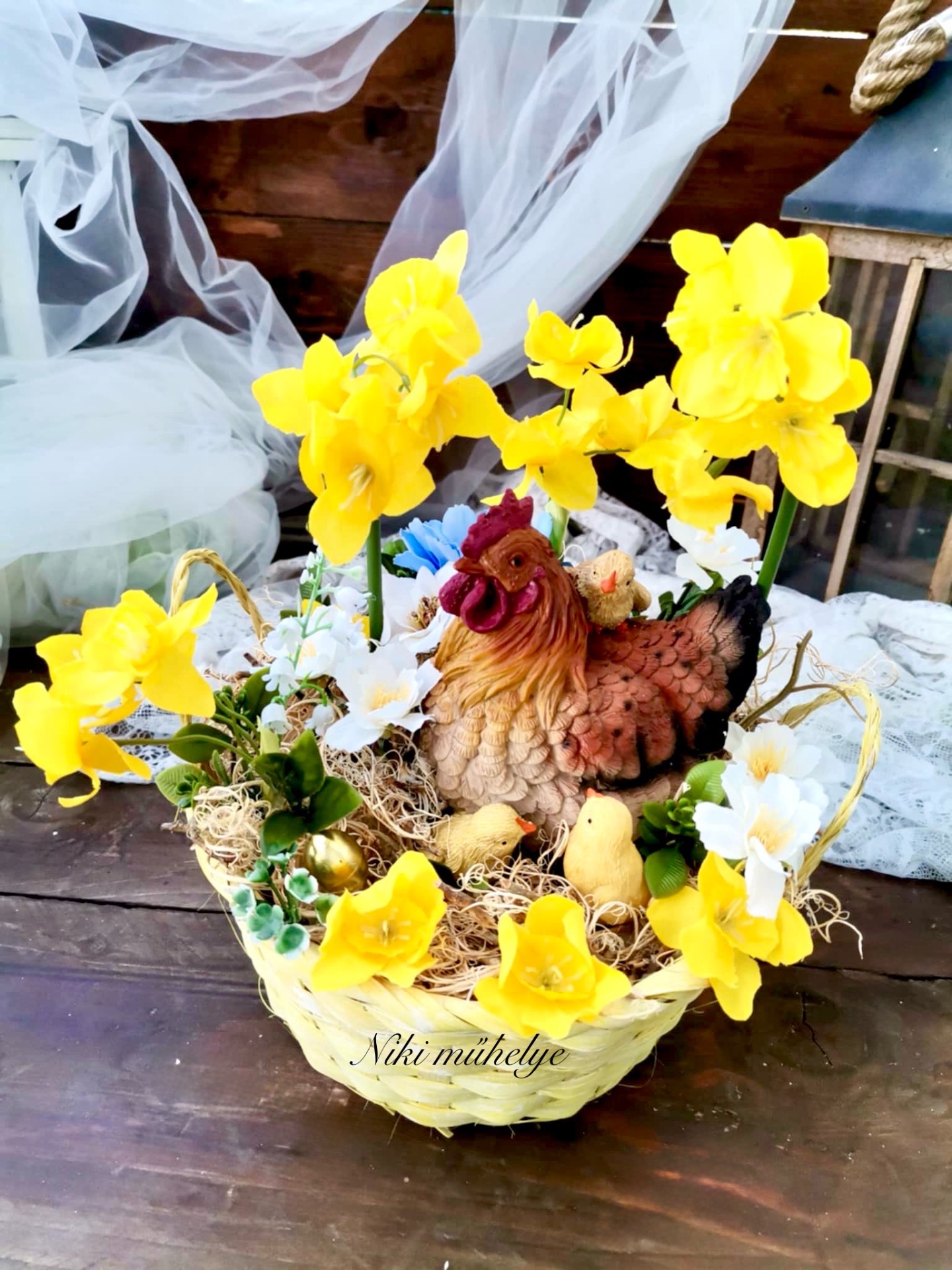 Nárcisz tavaszi asztaldísz, csibe fészek