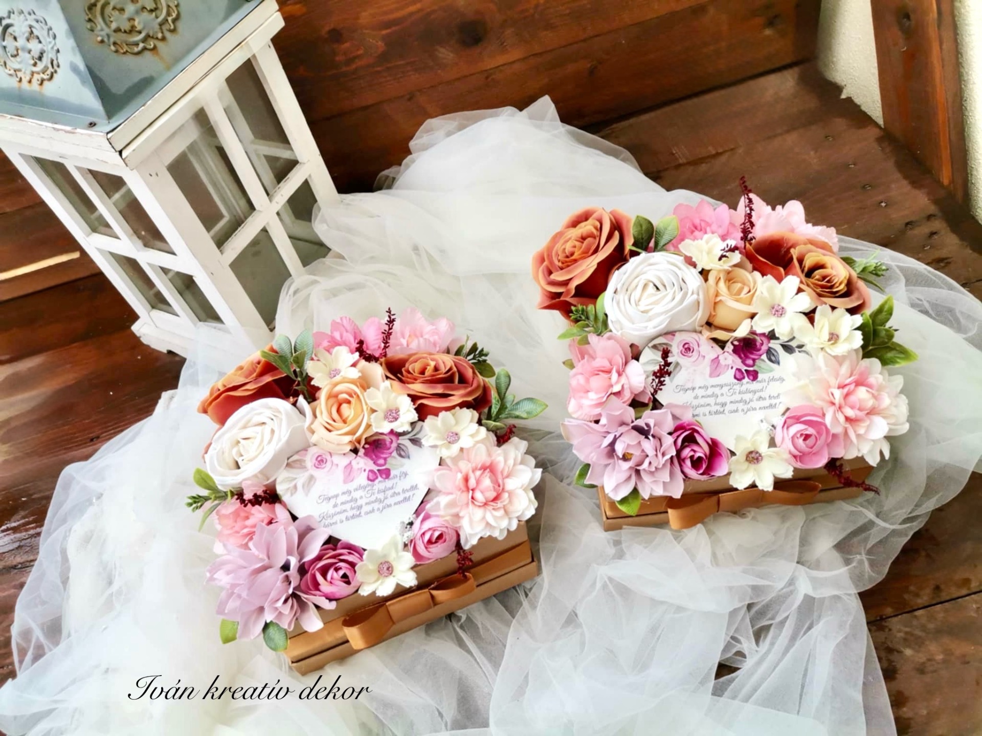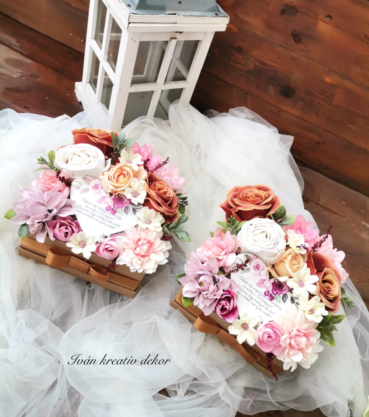 Az ár 2 darabra vonatkozik! Készletről vihető szülőköszöntő dobozok. A dobozok natúr színűek. Kész termék átmérője kb. 23*25 cm